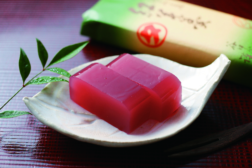 一般的な小豆の羊羹よりもあっさりと仕上げました。 見た目にもおめでたく、ご進物やお祝い事にも喜ばれています。